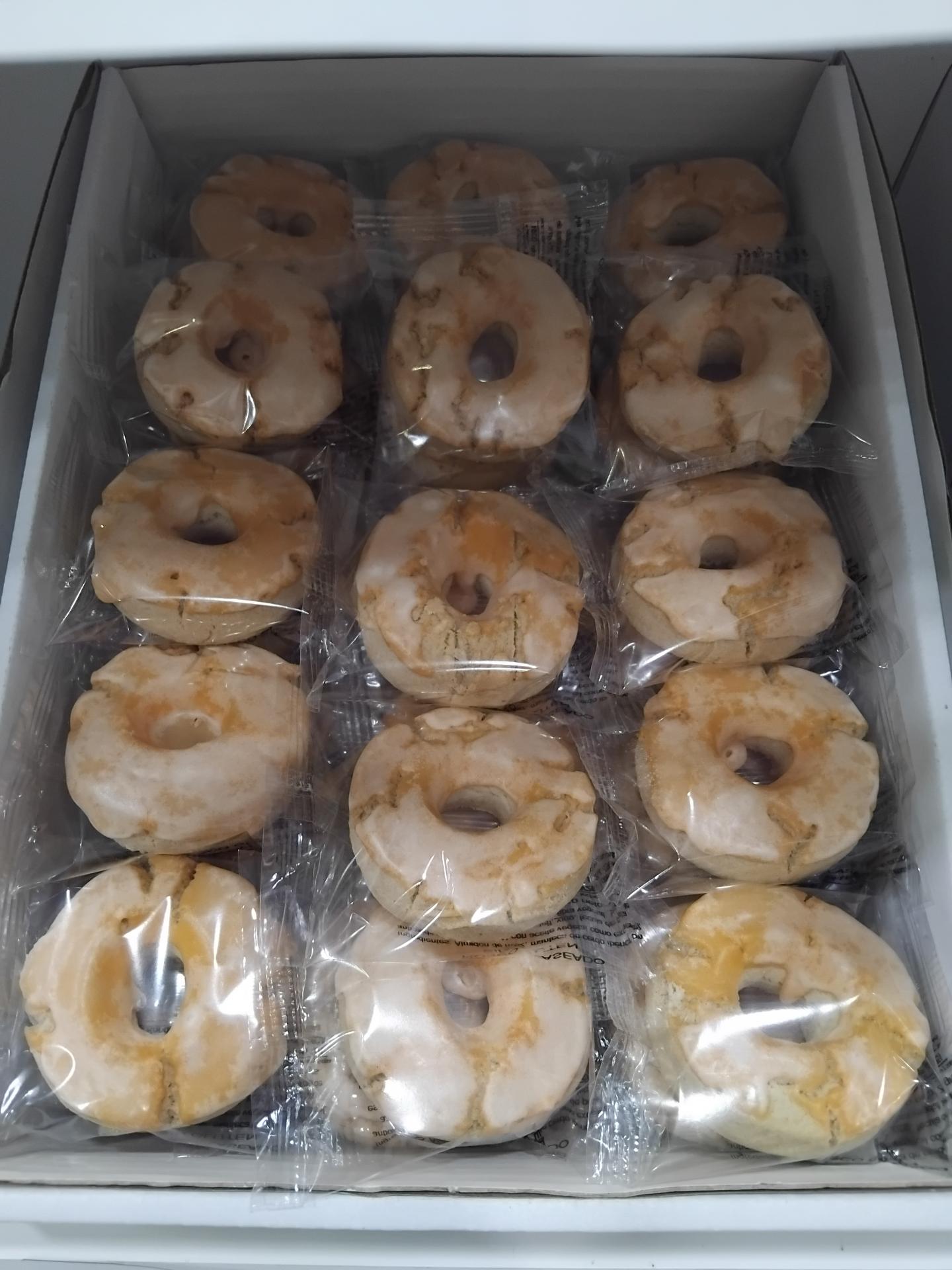 Roscos glaseados pequeños. Tamaño similar al rosquito frito o al rosquito de naranja que viene en el blíster.