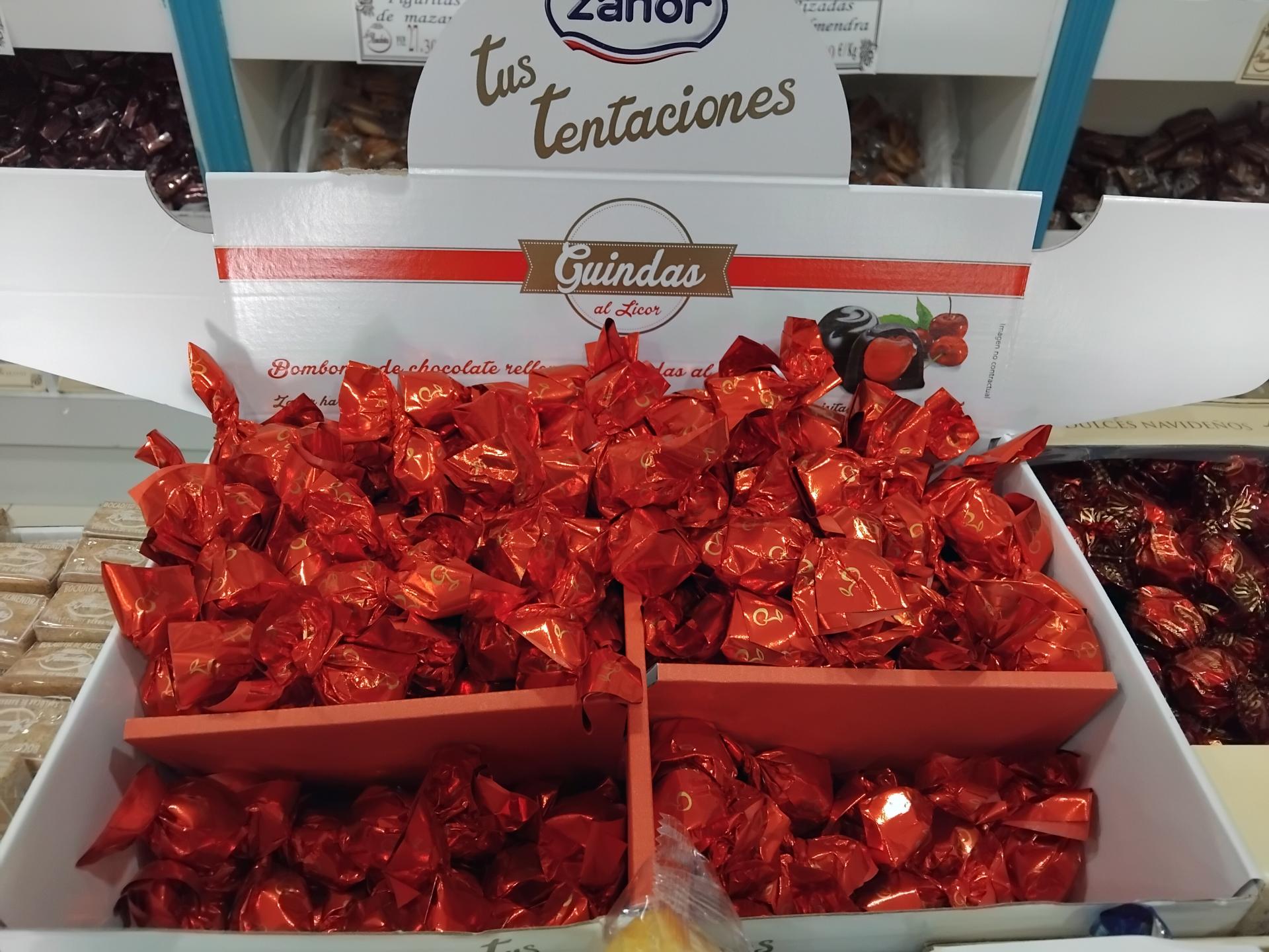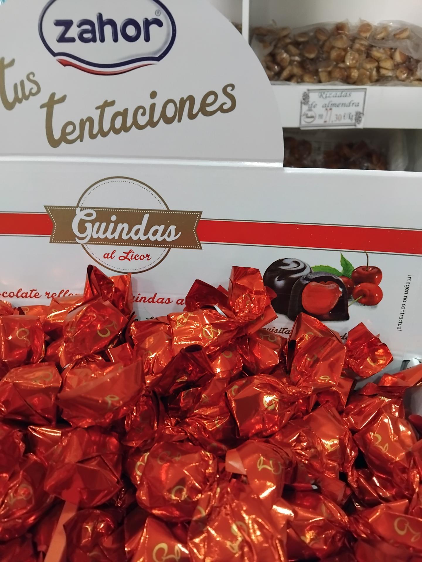 Azúcar, pasta de cacao, cerezas (19.50%), jarabe de glucosa, licor 5% (jarabe de guindas, agua, alcohol), manteca de cacao, mantequilla concentrada, emulgente (lecticina), aromas.